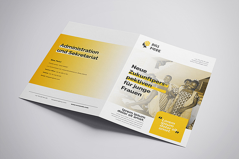Quelle meilleure façon de représenter la Fondation qu'avec une nouvelle brochure qui reflète la vie et surtout la culture du Burkina Faso ? Pour comprendre la culture, des recherches approfondies ont été effectuées sur Internet, car se rendre dans le pays pour une visite sur place était presque impossible dans les conditions du Coronavirus. Nous avons trouvé ce que nous cherchions et avons pu transférer les ornements typiques dans le nouveau design et fournir une mise en page globale qui transmet un message clair aux sponsors potentiels.